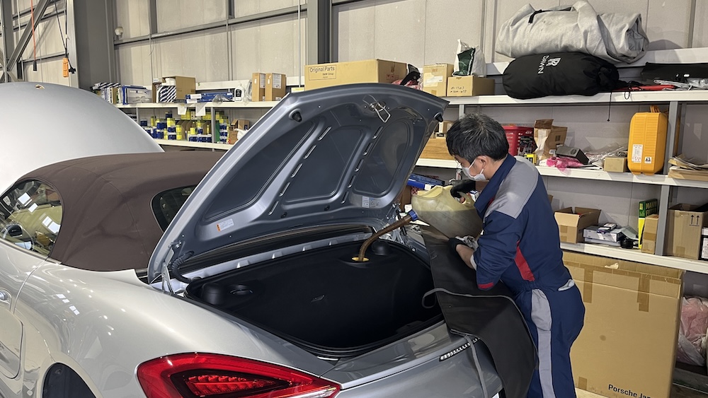 ポルシェ981ボクスターのオーナーであるT様からは、『普段はあまり乗らず休日に乗る程度なので、車検は必要最低限の内容で進めたい』とご要望いただきました。