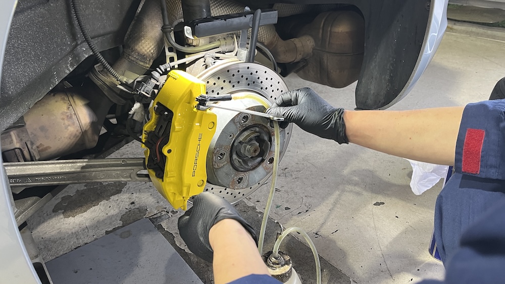 ブレーキフルード交換をしようと、左前輪のブリーダーバルブを緩めたところ……