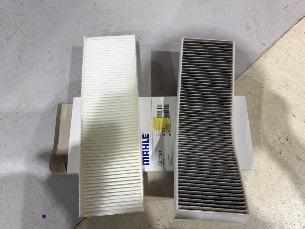 左)新品のエアコンフィルター / 右)使用していたエアコンフィルター
