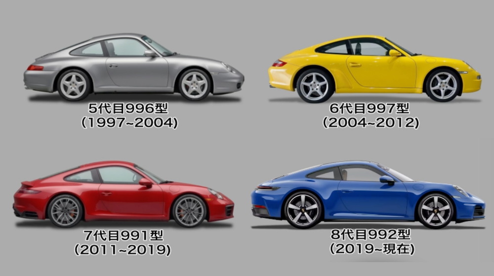 「911です」とおっしゃるお客様は多いのですが、911シリーズには世代ごとに異なるモデル名があるんです。